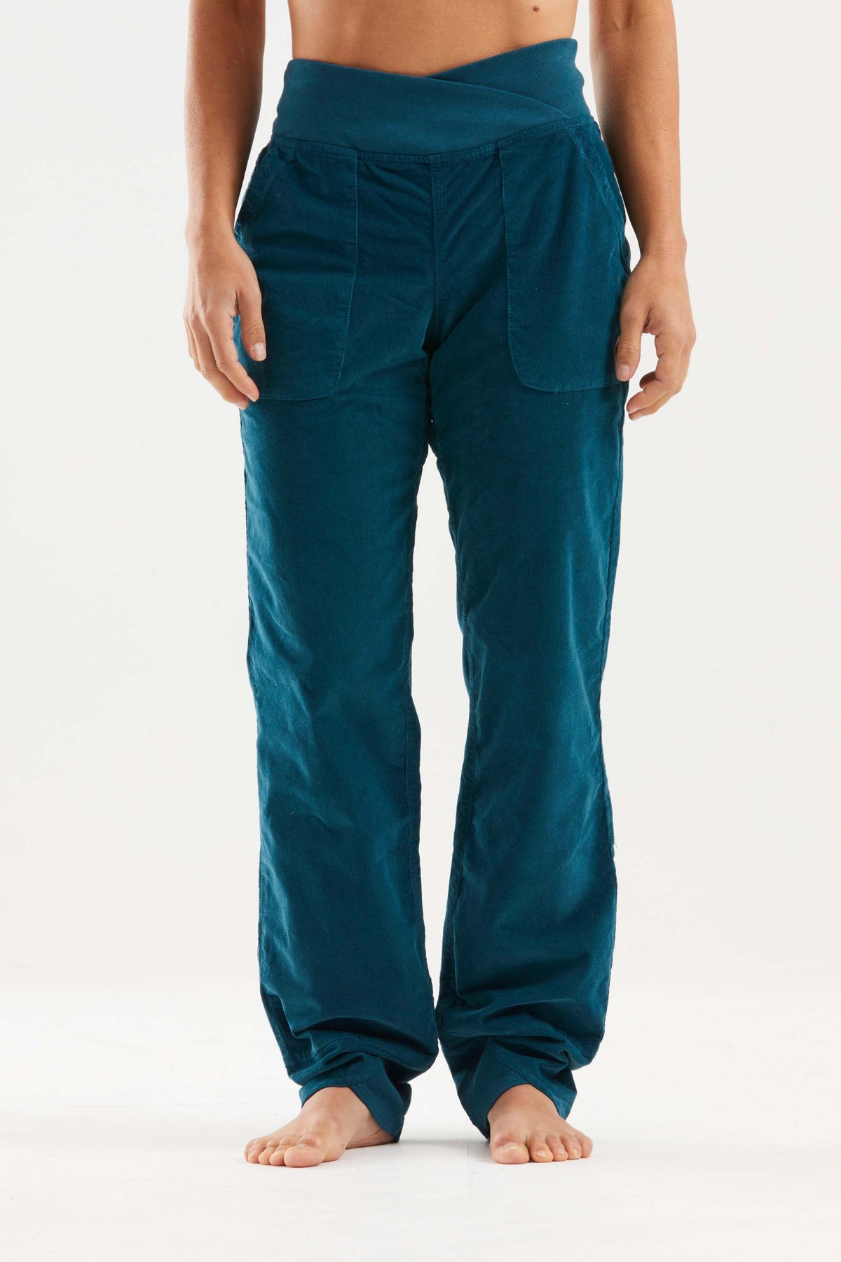 Pantaloni da outdoor e arrampicata in velluto testurizzato e cotone biologico. Caratterizzati da vita sagomata, fondo gamba distintivo, ricamo e patch in eco-pelle sulla tasca sinistra. Vestibilità rilassata, massimo comfort. Prodotto in Italia.
