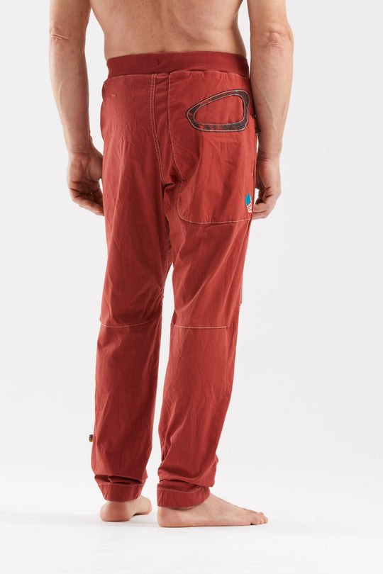 Pantaloni da arrampicata in cotone biologico con tasche posteriori sagomate e portaborracce su entrambi i lati.