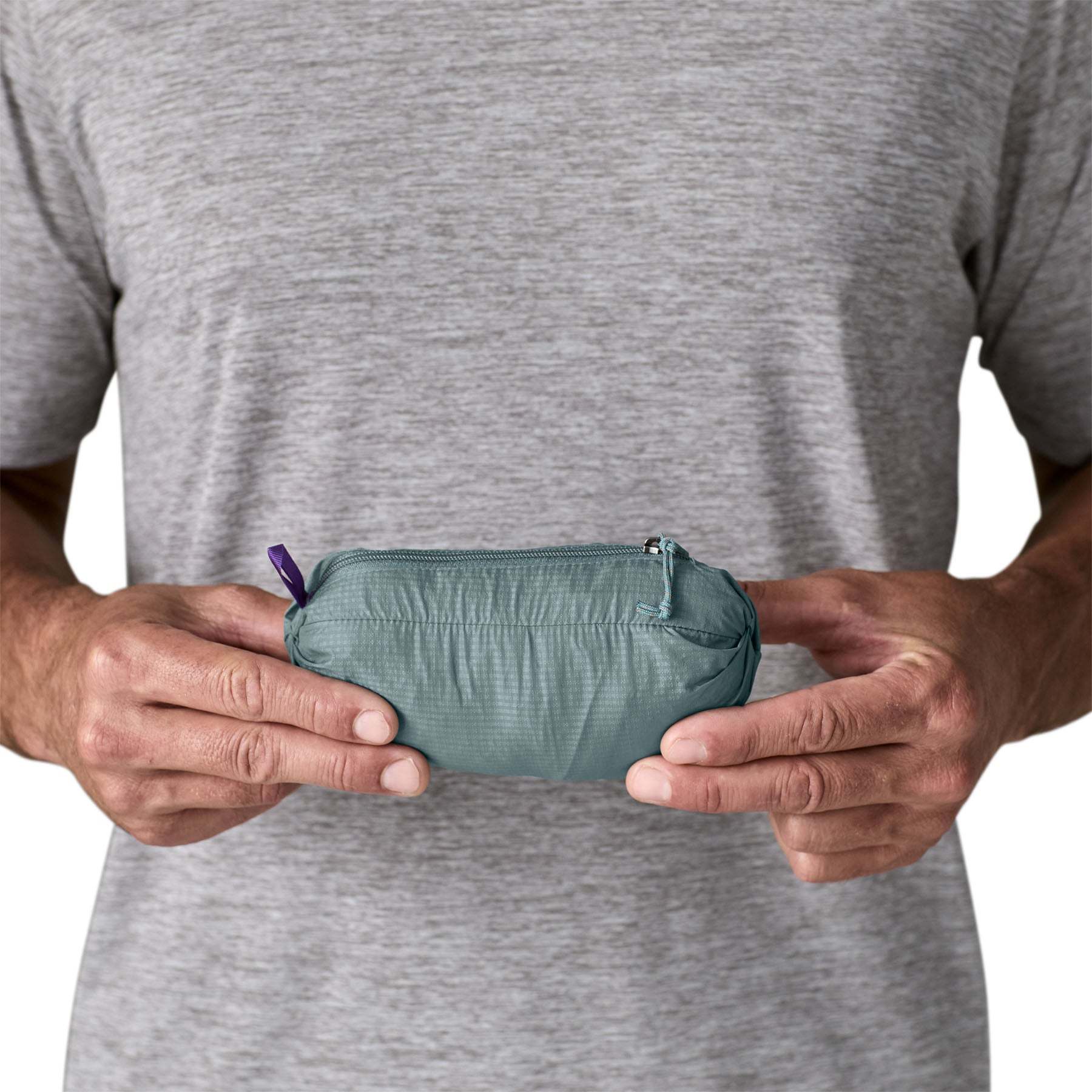 Leggerissimo tessuto esterno ripstop in 100% nylon riciclato, con trattamento DWR privo di PFC/PFAS (spalmatura idrorepellente a lunga durata che non contiene sostanze chimiche perfluorurate) per protezione dall’umidità leggera