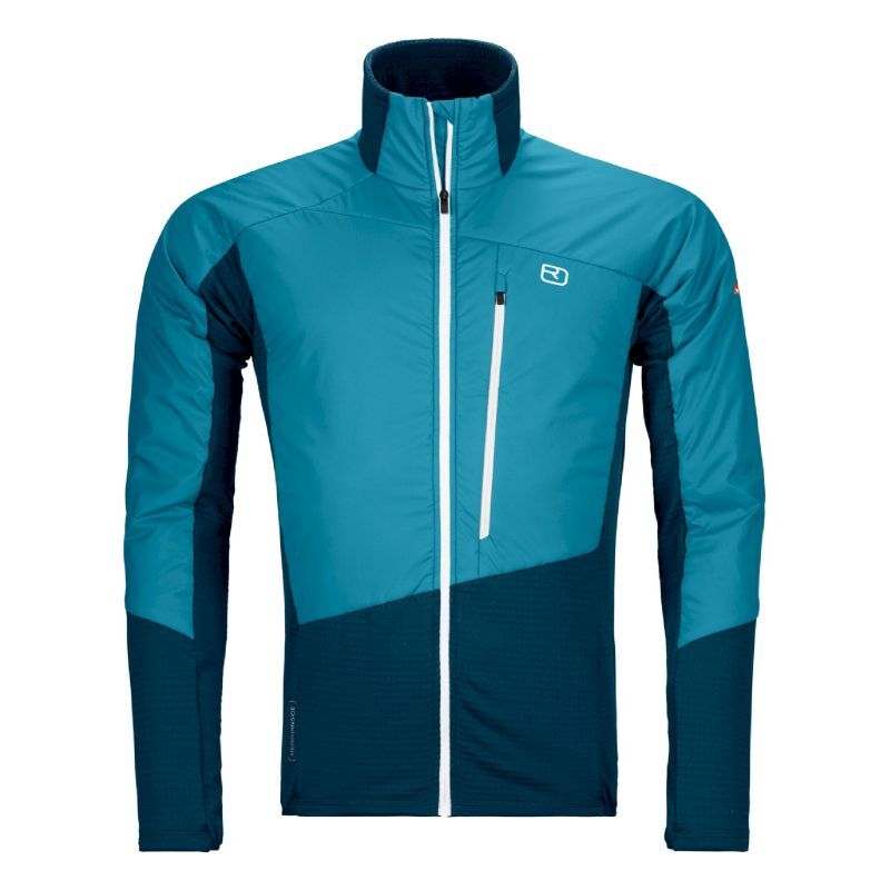 Il capo è dotato di cappuccio a tempesta con collo protettivo, tasche frontali ampie e tasca interna al petto. Il peso è circa 340 g secondo le specifiche del produttore. Un’ottima scelta come strato isolante alpino da portare sempre nello zaino.