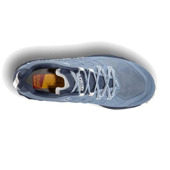 Scarpa Akyra II Woman con tomaia 3D Grid™ in KPU, suola con Trail Rocker™ e Impact Brake System™, ideale per stabilità e dinamismo.