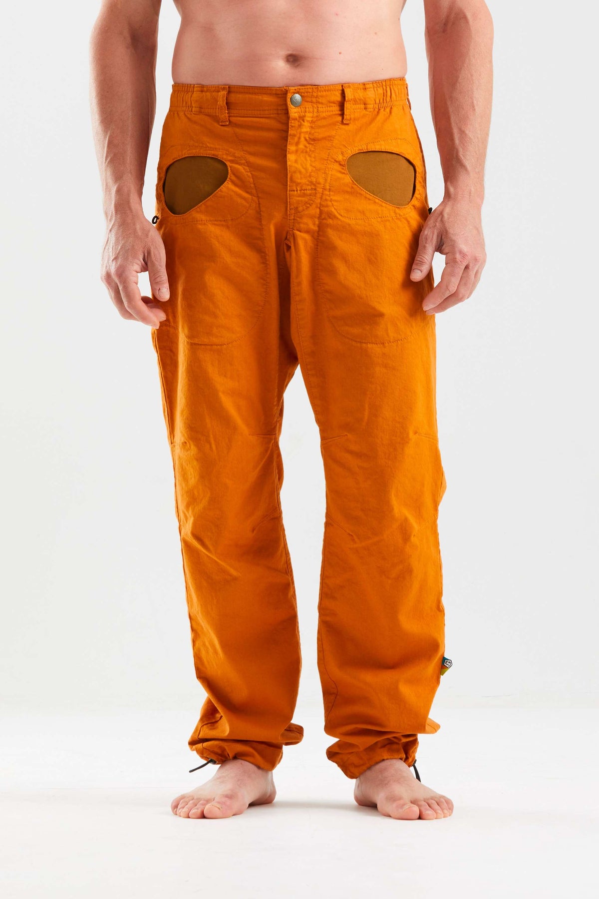 Pantaloni da arrampicata urbana in lino e cotone biologico. Tasche interne in tessuto a contrasto. Ricamo sul retro. Fondo gamba e vita regolabili. Portaspazzole. Buon comfort e vestibilità regolare. Fatto in Italia.