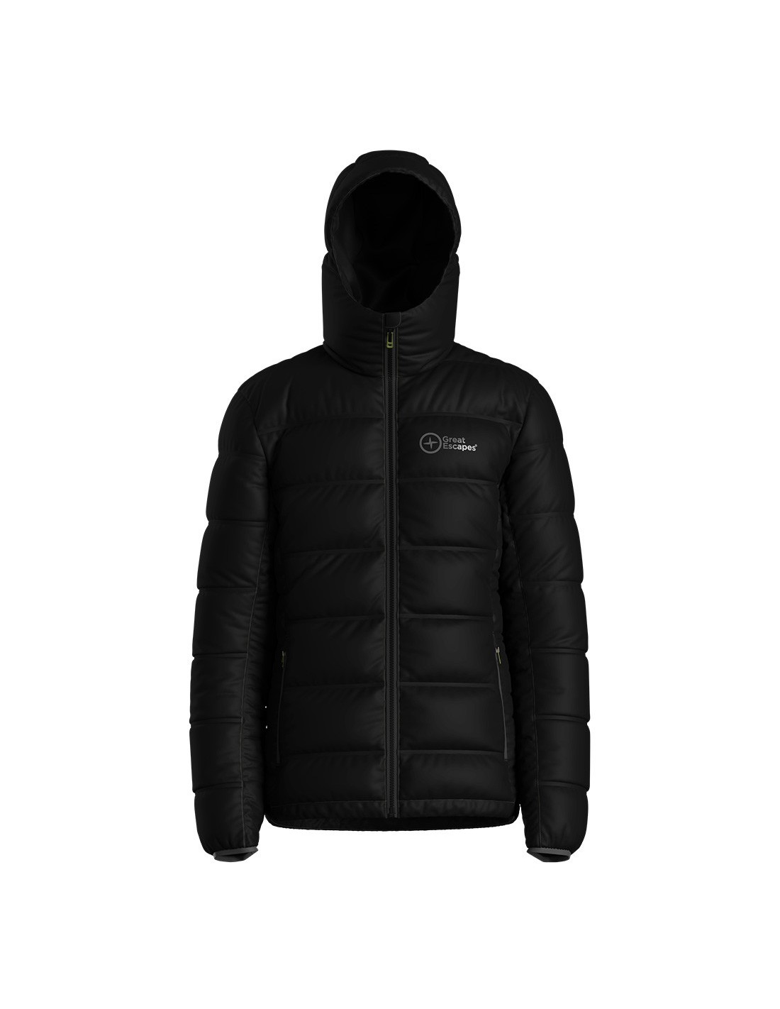 Giacca imbottita per climi freddi, molto calda, morbida e leggera. La particolare costruzione con cuciture ad ultrasuoni rende il capo unico; presenta un cappuccio regolabile, due tasche in vita e una interna. Il materiale esterno e l’imbottitura sono in materiale riciclato. Certificata GRS.