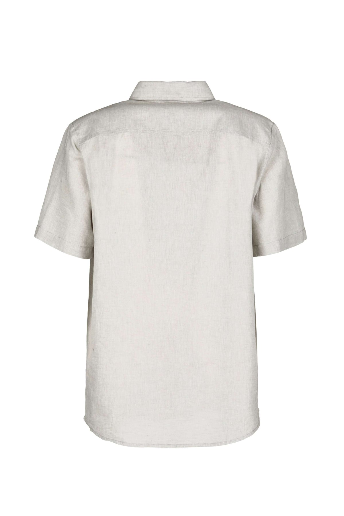 Linen shirt and cotton. Two pockets on the front. Printing inside the back. Regular fit. Made in Italy.