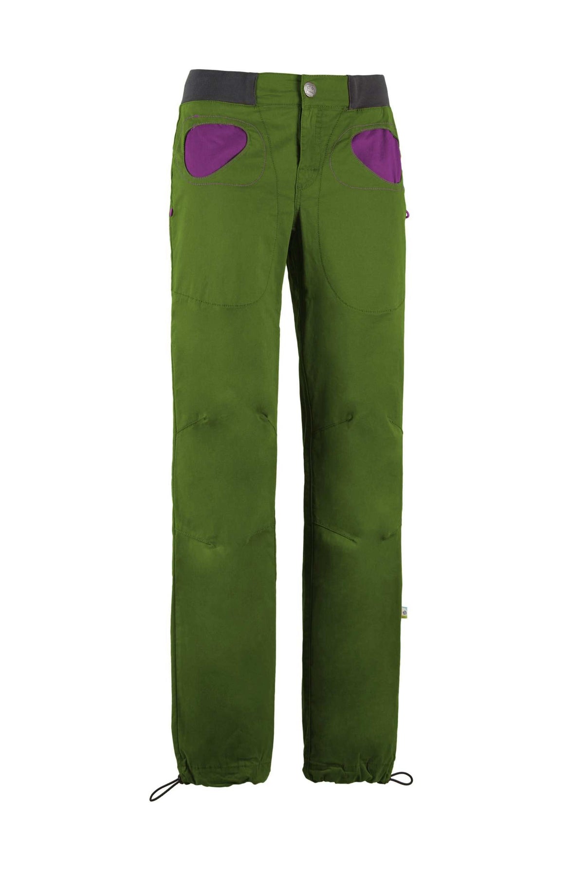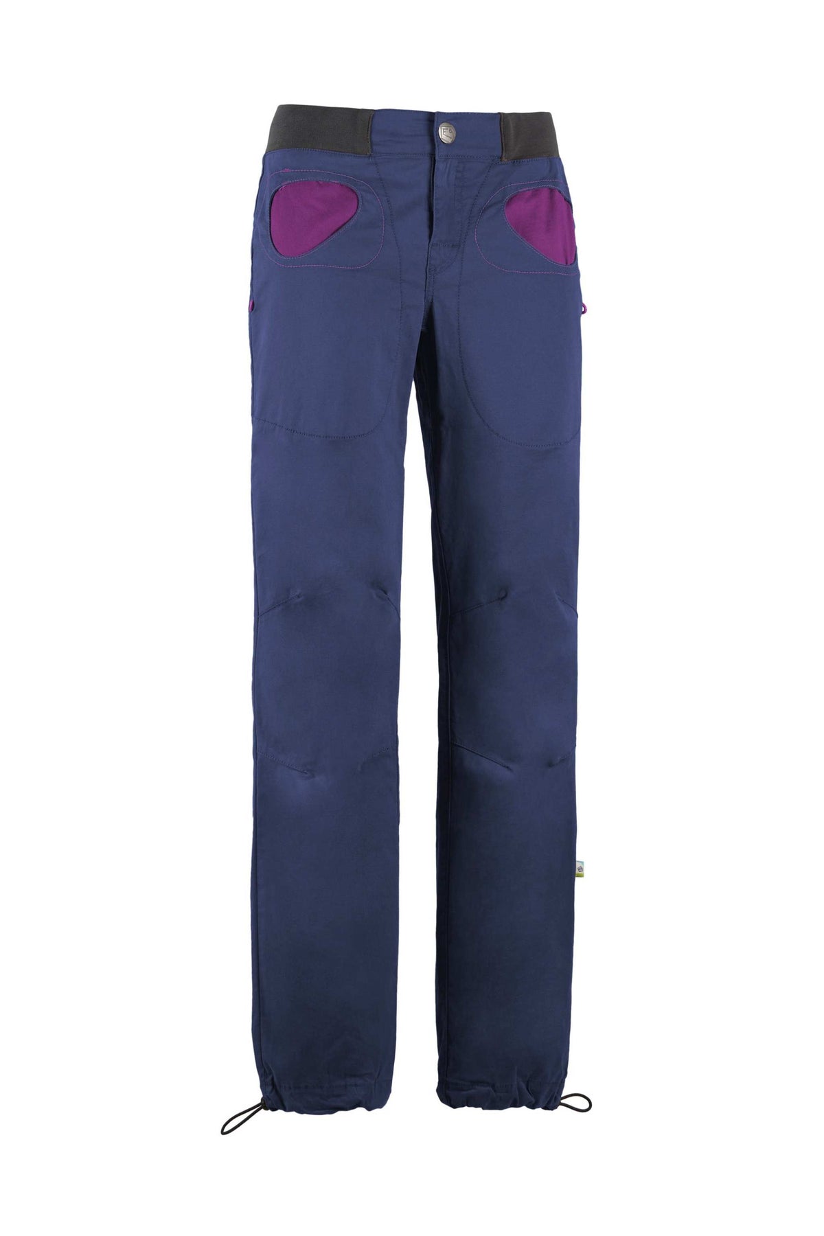 Outdoor and climbing trousers in stretch gabardine. Organic cotton. Pocket with contrasting color fabric. Adjustable leg bottom and waist. Brush holders on both side. Good comfort and mobility. Slim fit. Made in Italy.