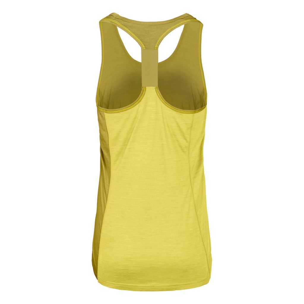 120 Cool Tec Fast Upward Top W in yellow, featuring athletic fit, designed for climbing with quick-drying Merino wool and Tencel.